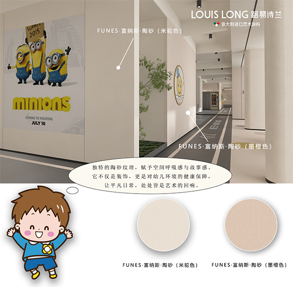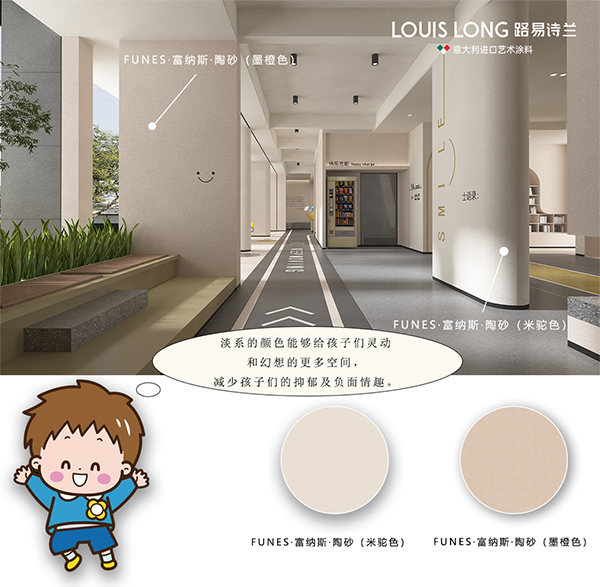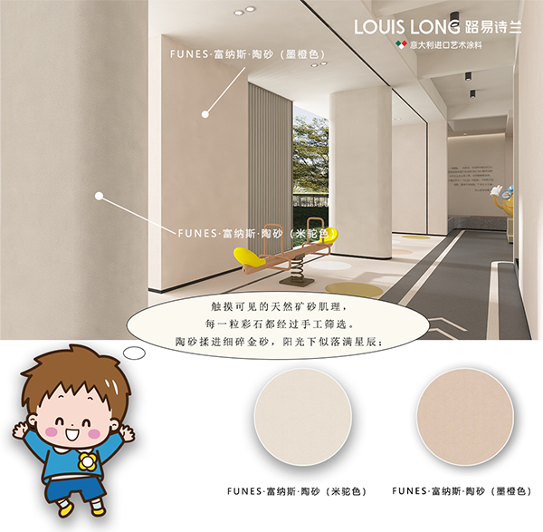 阳光和儿童也是不可缺少的要素,阳光能让儿童在幼儿园中更有生机,Funes·富纳斯·陶砂纹理颜色的明暗更有层次,