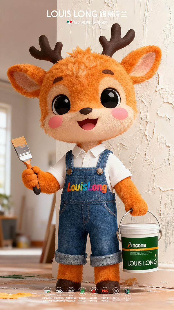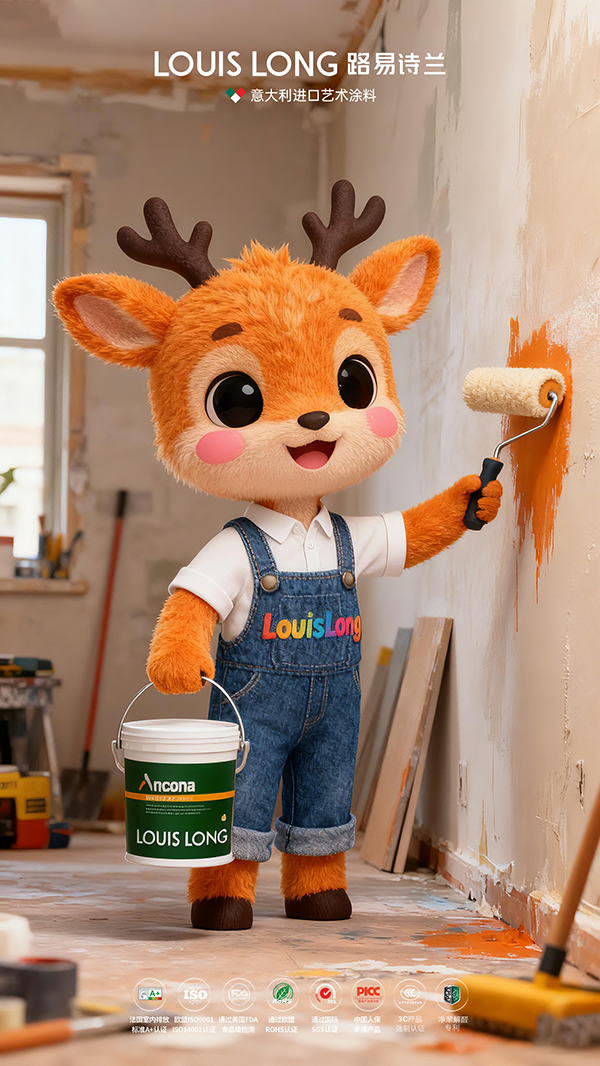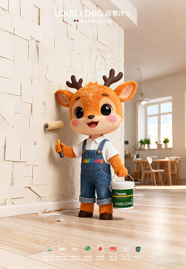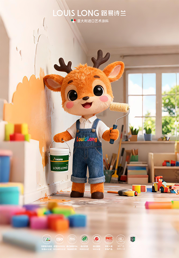 小鹿的亲和姿态,传递着品牌“让艺术触手可及”的初心,打破传统涂料的冰冷感,让墙面成为承载情感与创意的鲜活载体。