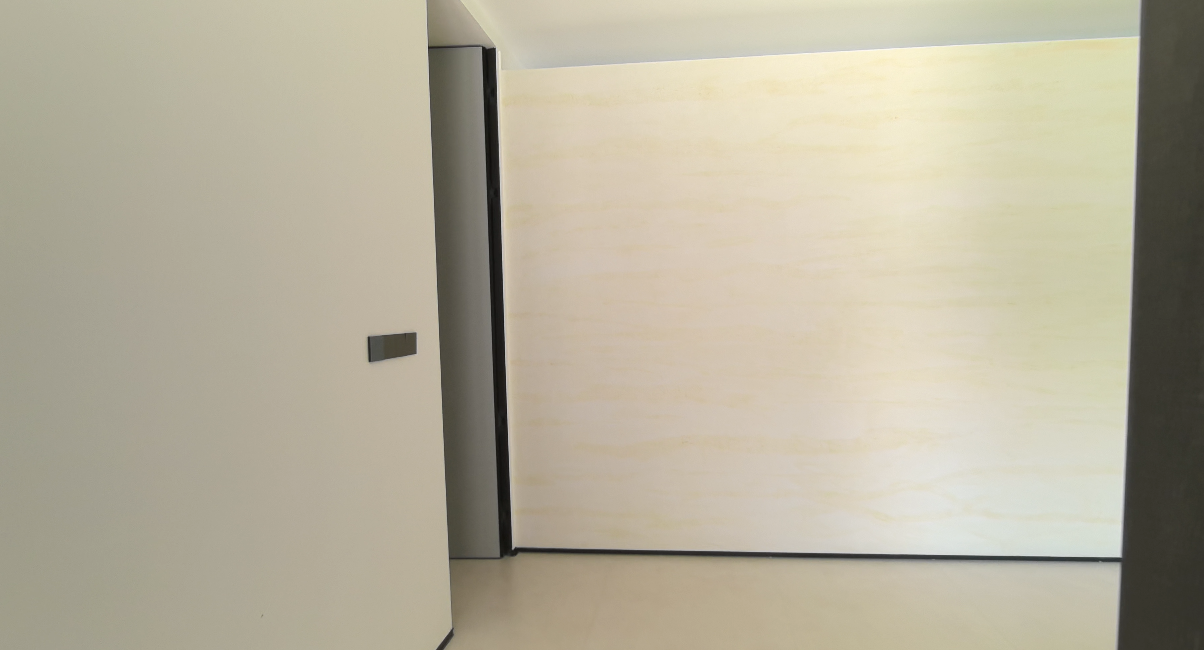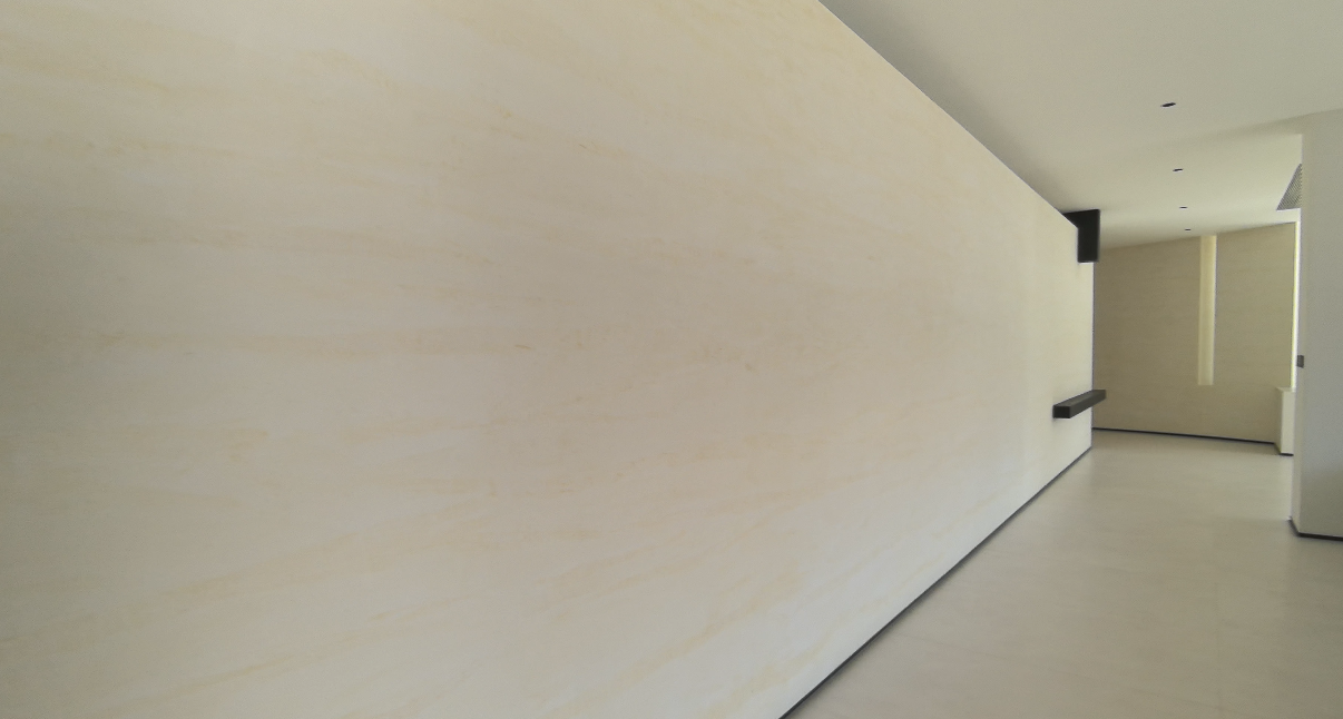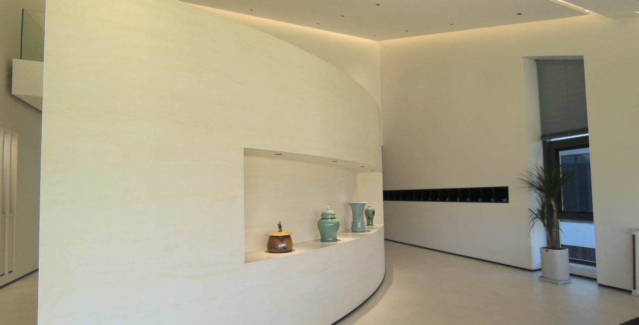 其墙面摒弃传统装饰,全数采用路易诗兰艺术涂料的travertine·洞石与Vasto·瓦斯特两款产品。