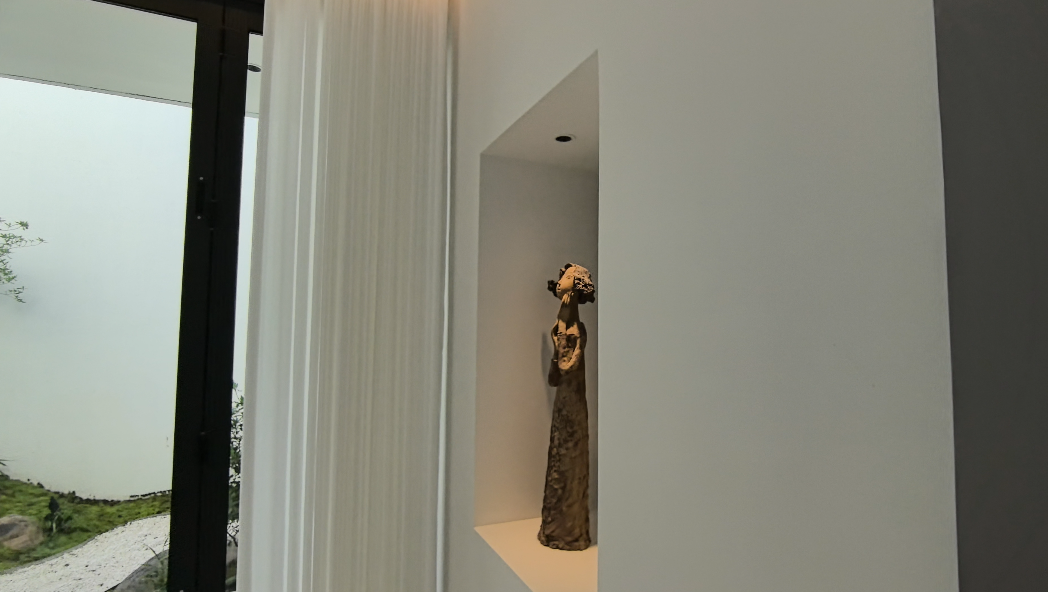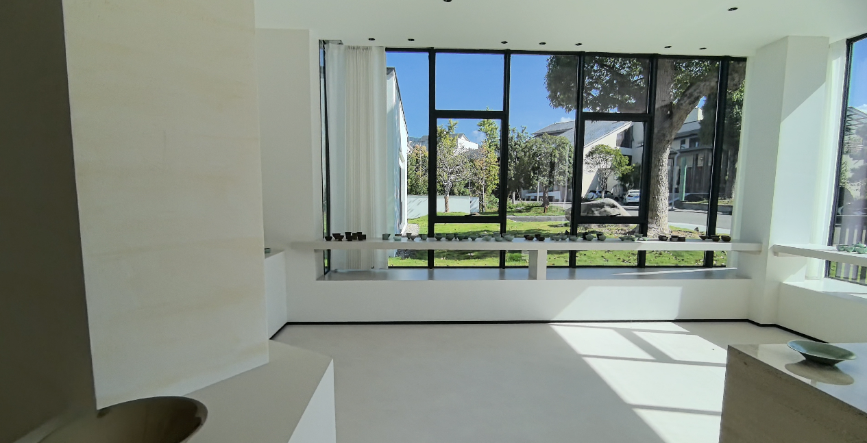 米驼色洞石的粗粝感传递出“未完成感”,与青瓷烧制中“火与土的偶然”形成哲学共鸣,