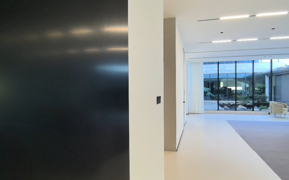 瓦斯特墙面与光线碰撞出工业美学,但触感温润的表面又中和了金属的冰冷感。