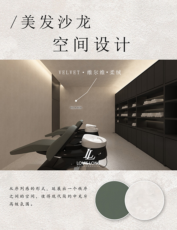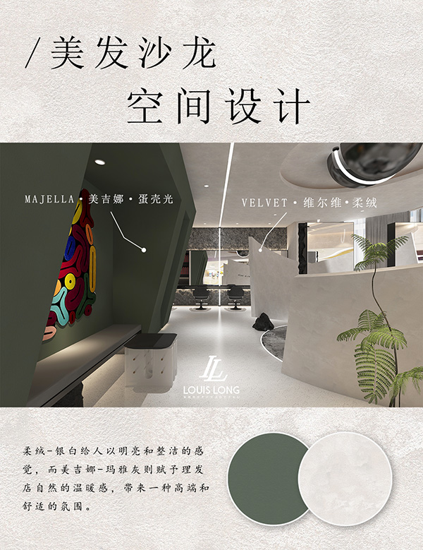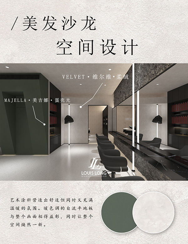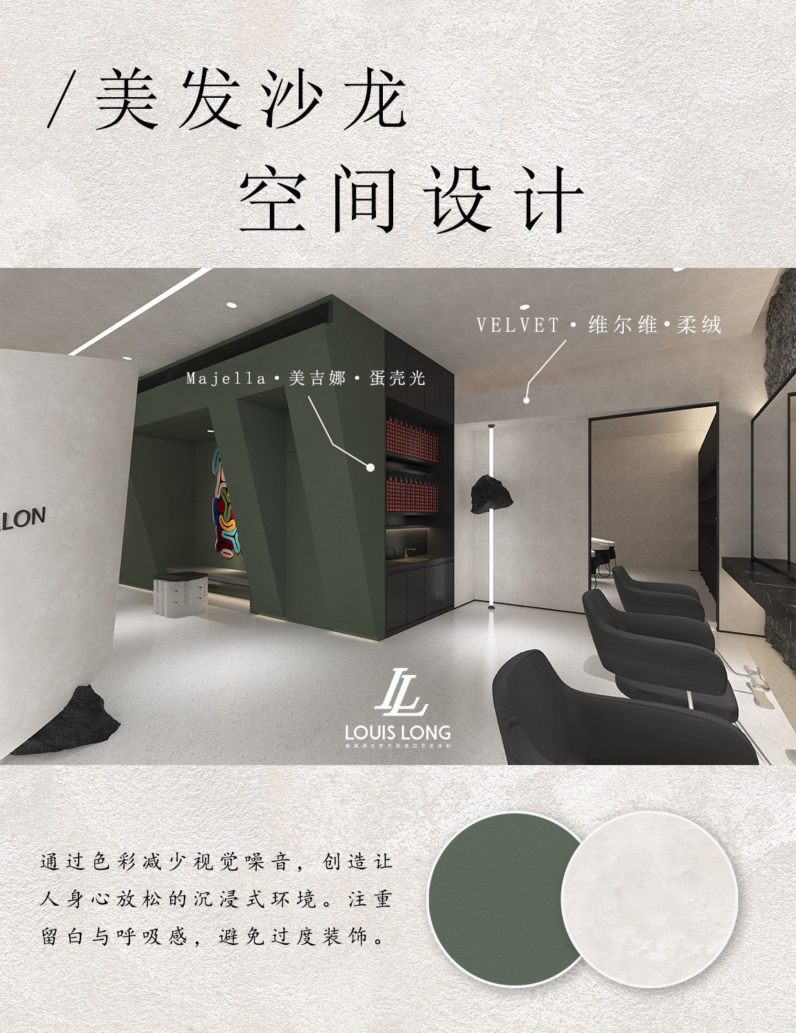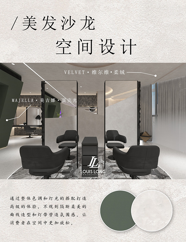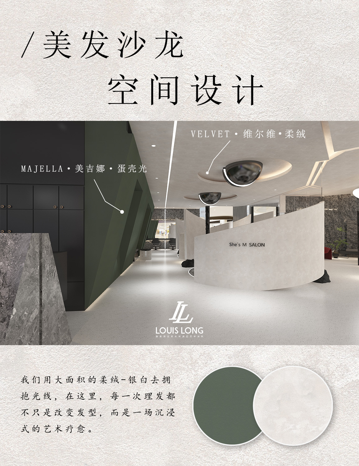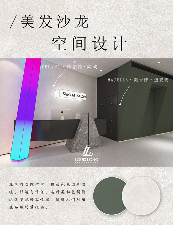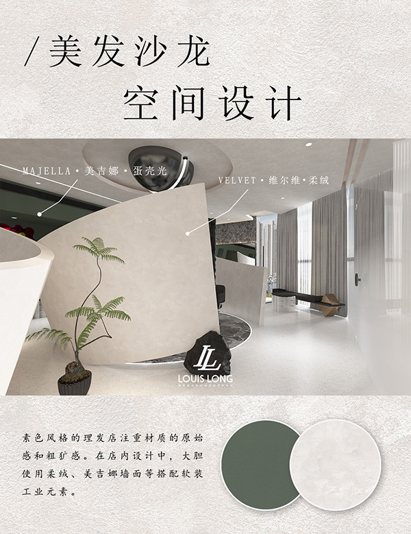 环保健康、防霉防潮、防水抗碱、具有超强装饰效果。既能增添空间的温馨感,又不会显得过于单调,可以有效地营造出发廊简约、现代的氛围。
