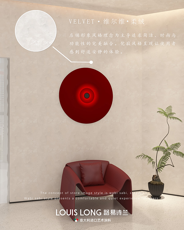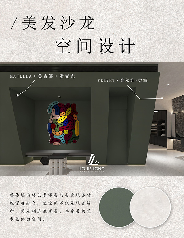 搭配美吉娜-玛雅灰点缀,Majella · 美吉娜 · 蛋壳光是路易诗兰意大利原罐原装进口艺术涂料,触感丝滑,手感细腻。