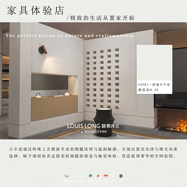 CAPRI·卡布里·肤感小羊皮艺术涂料,灵感源自意大利坎佩尼亚区那令人心驰神往的卡布里美景,将自然与艺术的完美融合带入了您的生活空间。