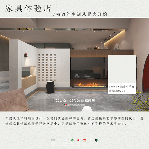 这款涂料以其独特的手感,让人一触难忘——如同轻抚过卡布里山间细腻的晨雾般温柔。